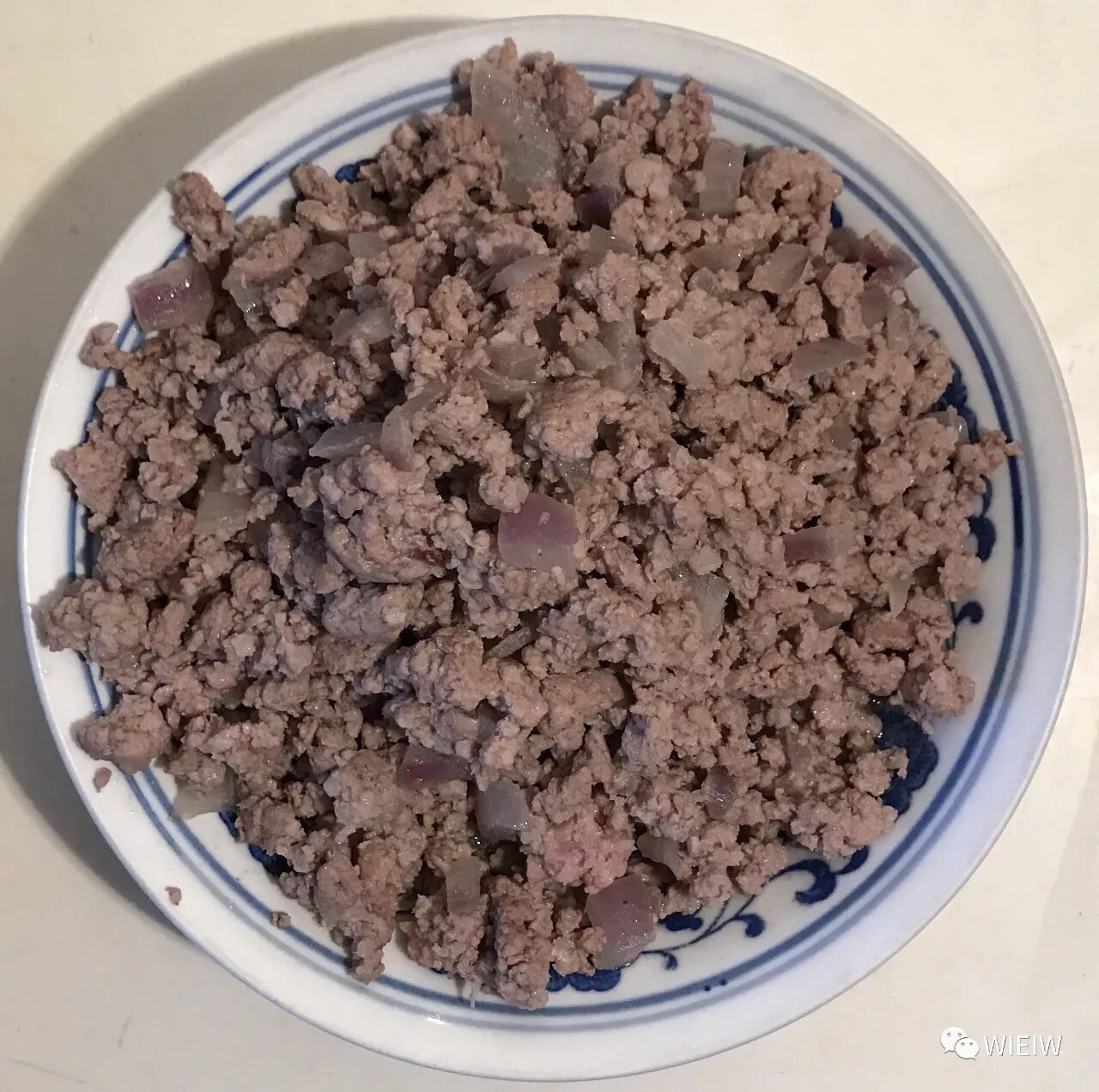 中火热锅热油,将牛肉倒入锅中,翻炒至肉末都分散开来,撒盐,黑胡椒粉,蒜粉,葱末,继续翻炒2-3分钟,炒熟为止