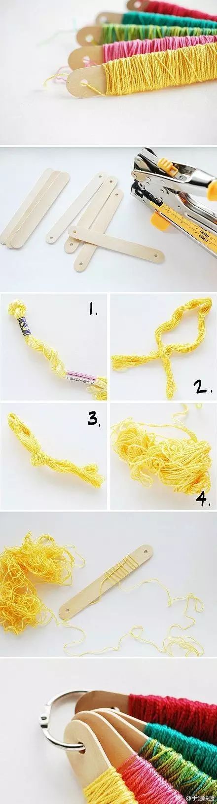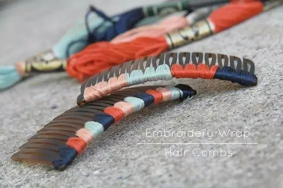 梳子上利用剩余的线组合好颜色,缠绕在梳子上,效果非常明显