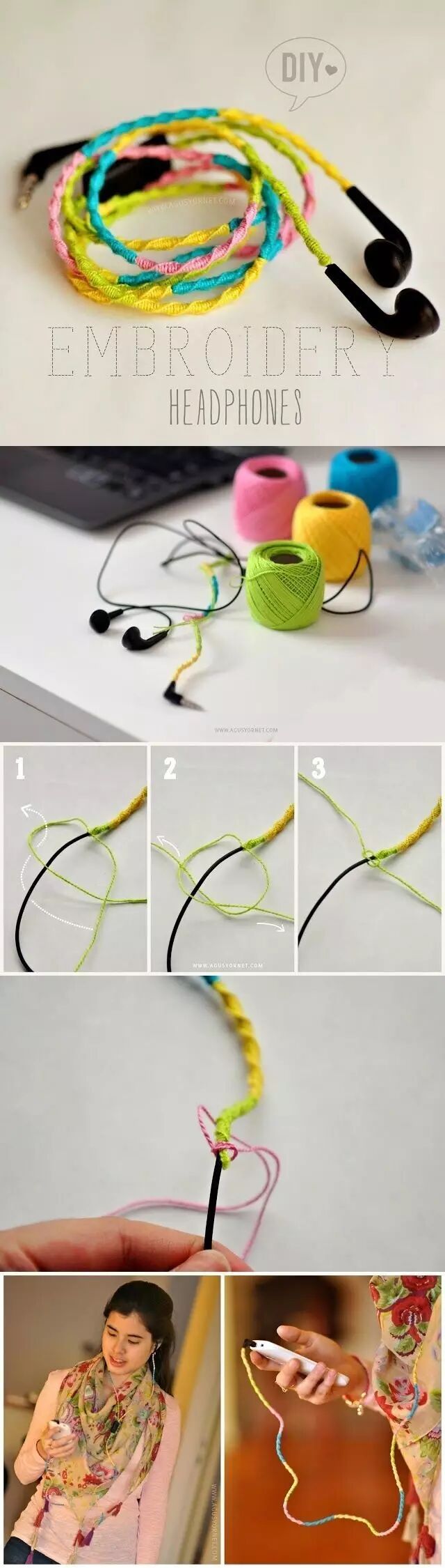 下面的耳机用的线是钩编用线,但是绣线也是一样可以实现这个的,赶紧get让自己的耳机线也美一美,数据线也可以如此操作