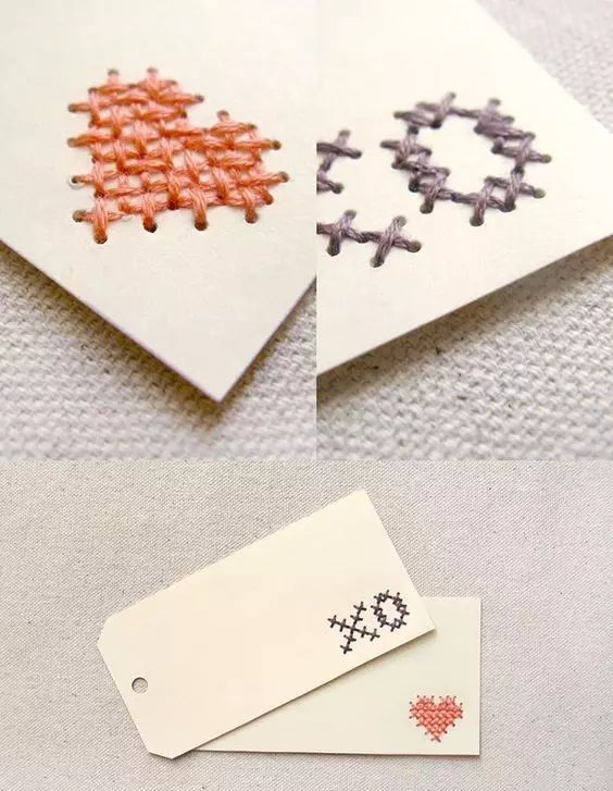 制作贺卡、书签、卡片、甚至做名片都是可行的,借助纸上的小孔,继续完成十字绣图案。