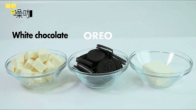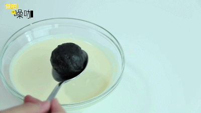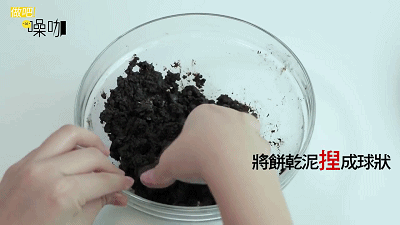 ☑ 将混合好的饼干泥捏成球状,静置15分钟;然后将白巧克力煮至融化。