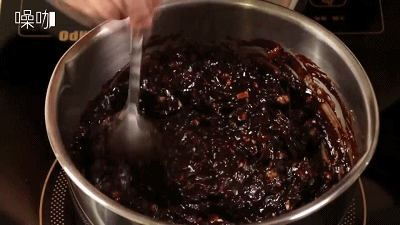 ☑ 将100克棉花糖和100克巧克力混合,隔水加热至糊状。