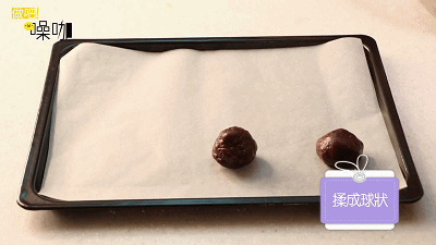 ☑ 将棉花巧克力面团揉成球状,压扁,放上棉花糖,放入180℃的烤箱中烤制10分钟,取出放凉即完成。