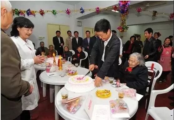 往年的生日场景:富润控股集团董事局主席、全国劳动模范赵林中先生为老人们切蛋糕~