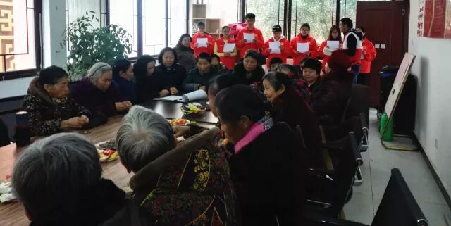 志愿者为老人们送上真诚的祝福??