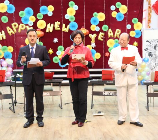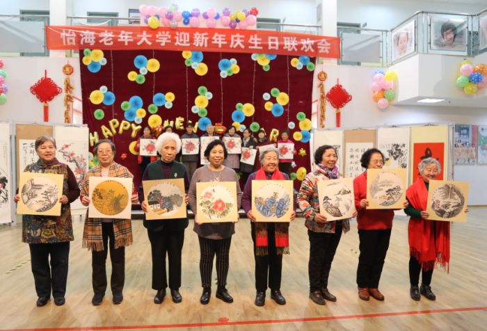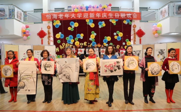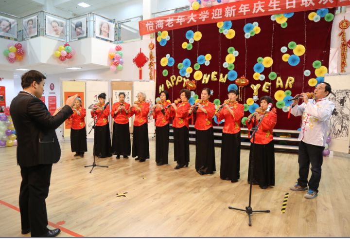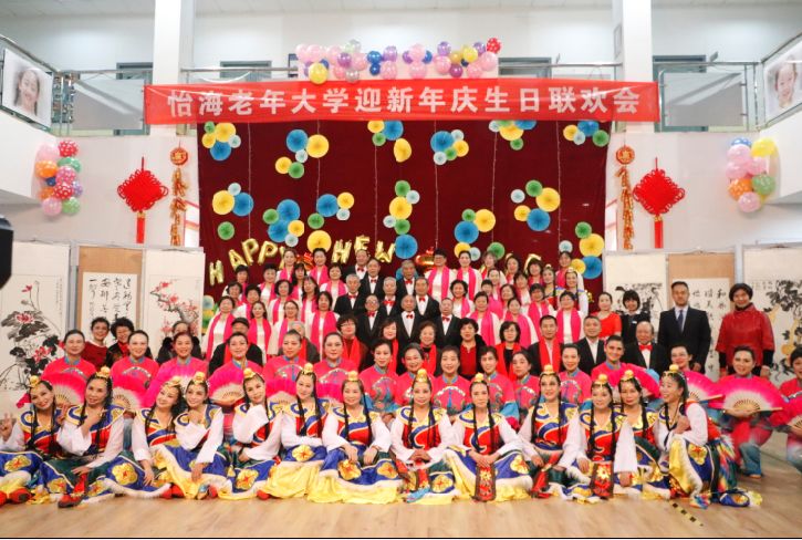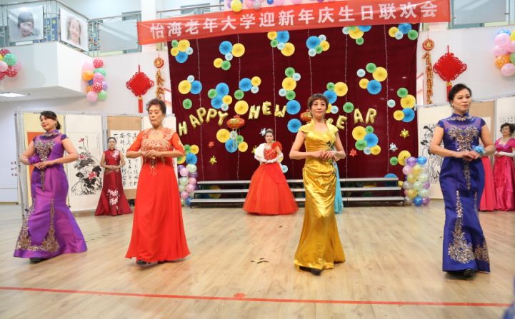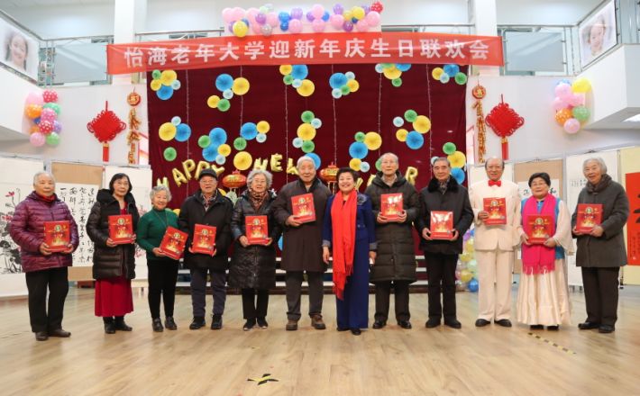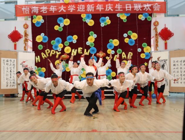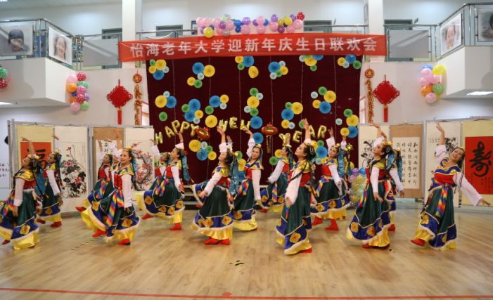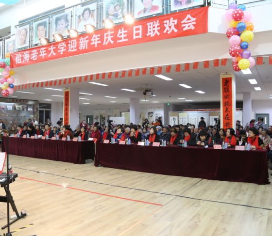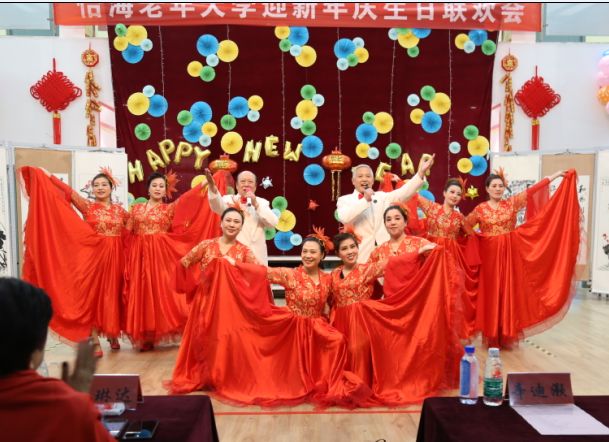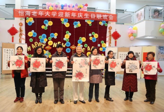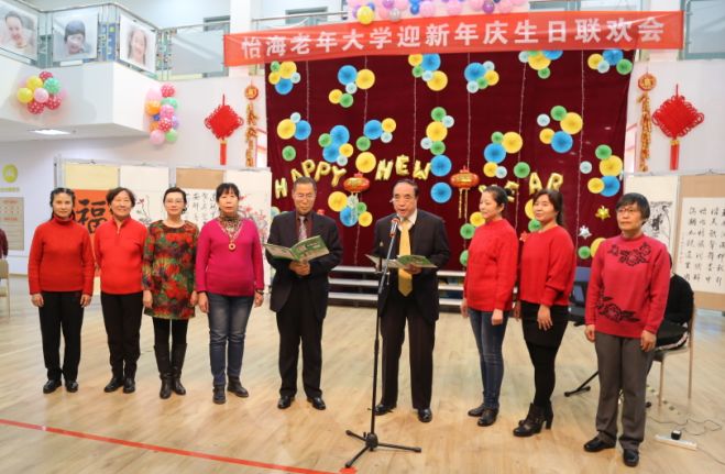 2017年12月28日下午老年大学大厅内,张灯结彩,宾客满盈。怡海老年大学“2017年迎新年成果汇报庆贺生日联欢”会在老年大学举办。老年大学全体师生欢聚一堂,欢声笑语,共同祝愿寿星生日快乐,一起辞旧迎新。