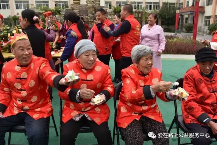 11月10日这天老人们过了一个特殊的集体生日,西安市爱在路上公益服务中心今年为周至县社会福利院老人过第三次集体生日,三十多名爱心志愿者走进福利院为老人带来十几个爱心文艺节目,带来生日蛋糕、爱心水果以及营养奶粉。看着老人满脸的笑容,我们所做的一切都是值得的。爱在路上为不同的老人过集体生日,让老人们切切实实感受到爱与温暖,美好与幸福。