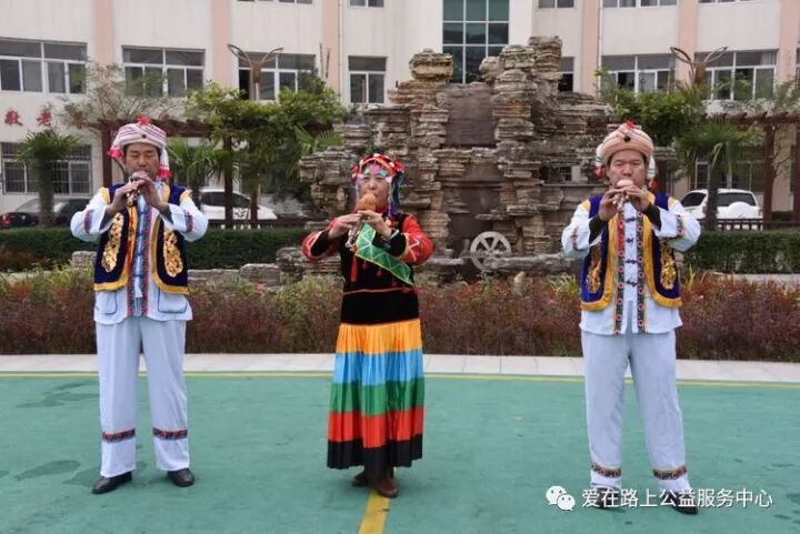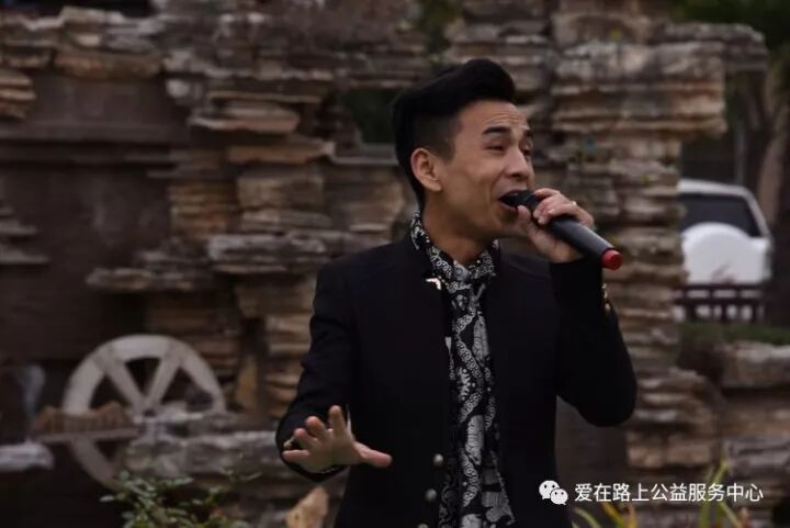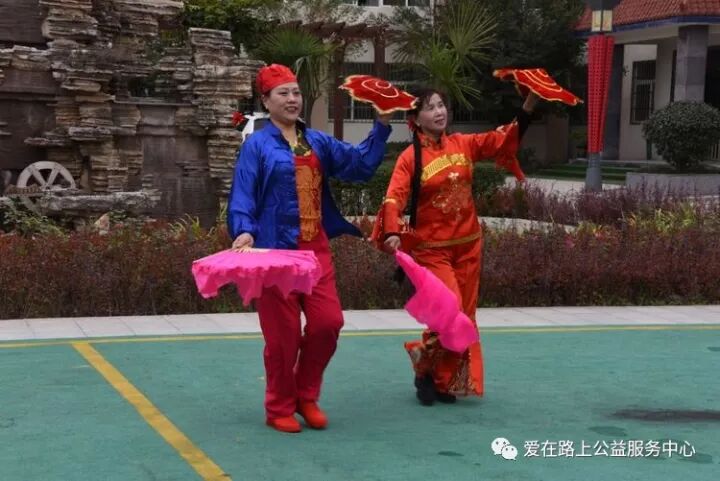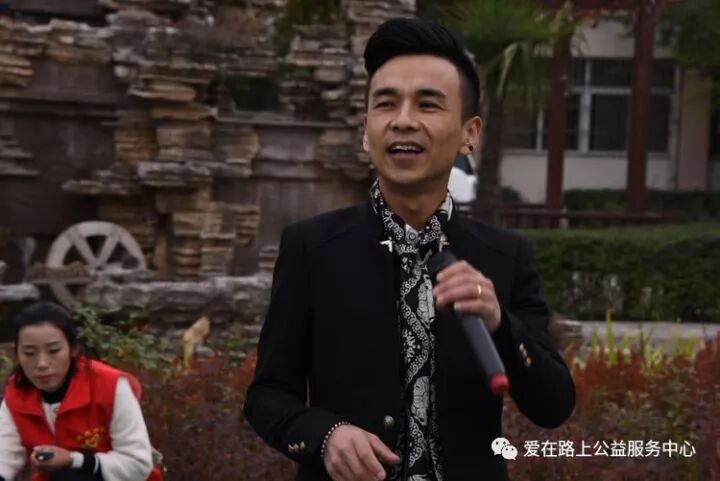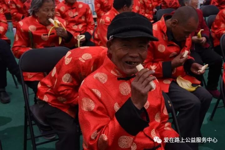 一边老人正吃着生日蛋糕,这边爱心文艺节目也没停