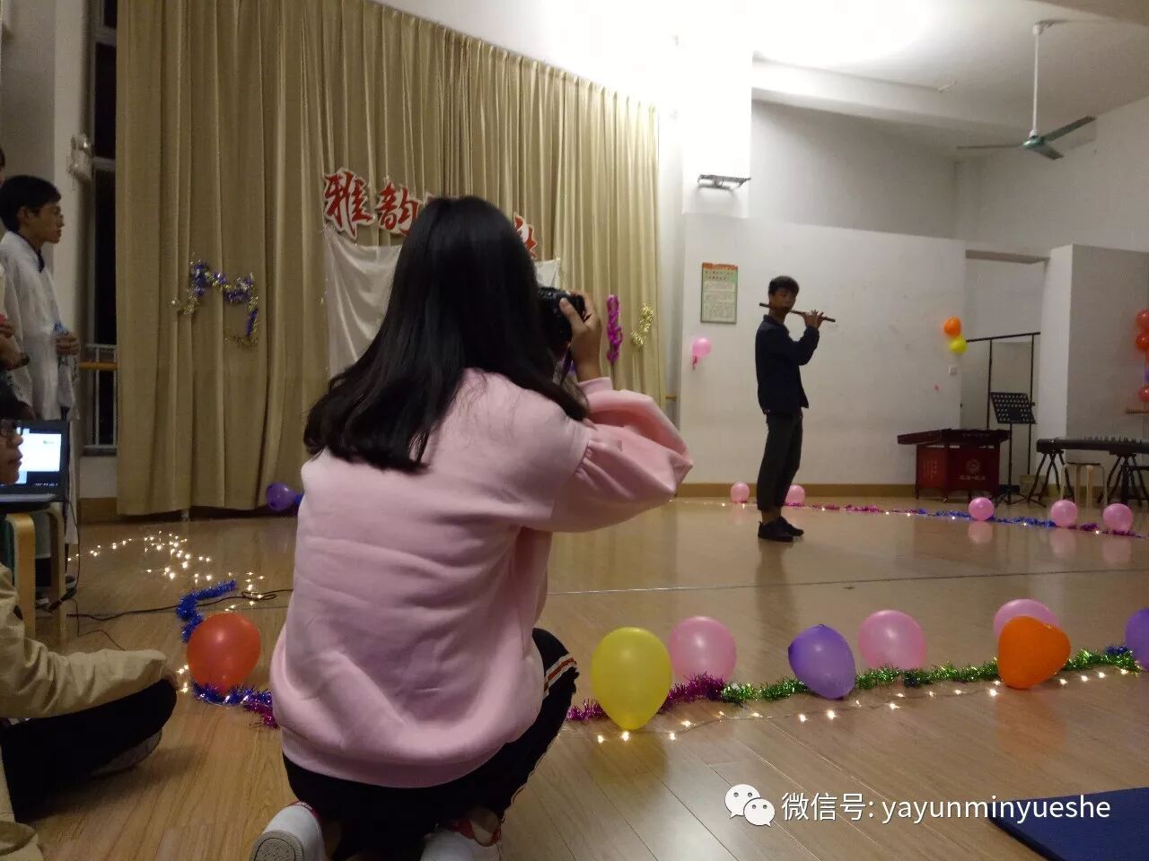 雅韵民乐社第贰周年的庆典到此结束了。每每到这种时候,总有些伤感。有个师兄说,去年也是这时候,此景此地不变,只是身边的人却不一样了。所谓朝看东流水。时间流逝,雅韵民乐社也不断壮大,今年更是吸纳了不少小鲜肉小仙女。相信在师兄师姐的带领下,以及“新鲜血液”的努力下,我们雅韵民乐社会越办越好,才子佳人倍出!最后,让我们再一次,祝雅韵民乐社生日快乐。