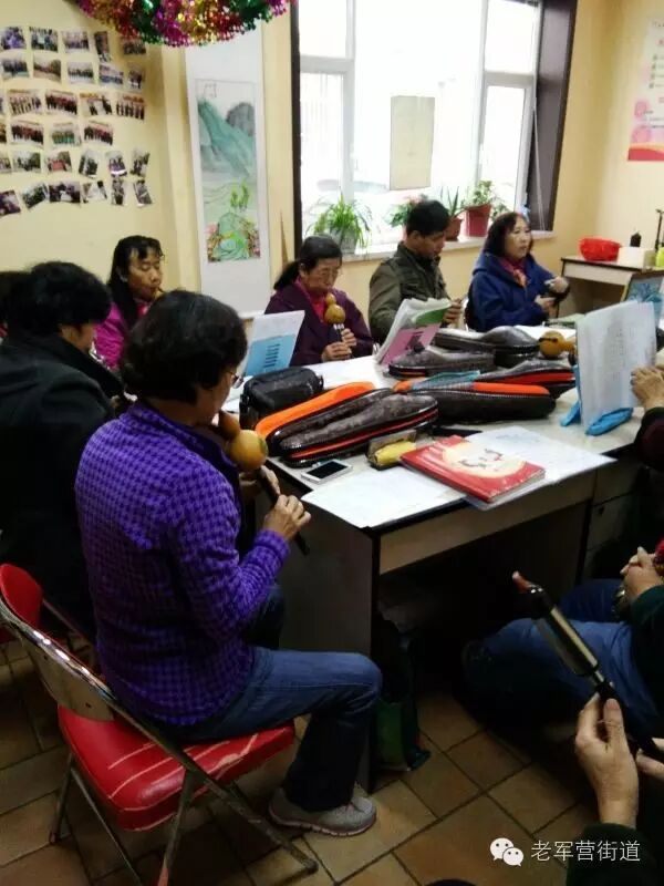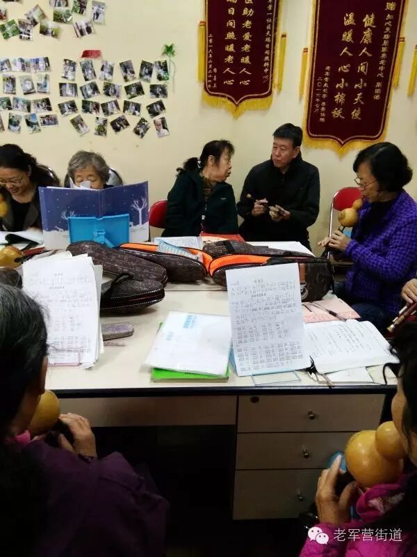 2015年11月,老军营小区第一社区日间照料中心兴趣班之一葫芦丝培训班正式开班,由具有专业演奏水平的居民帽润生老人义务担任老师,免费教大家学习葫芦丝。开班一年来,班上的学院从5个人增加到了现在的17人,他们都是慕名而来,从零开始跟着帽老师学习。他们年龄最大的76岁,最小的55岁,学的早的已经能够演奏曲子了,学的晚的也毫不落后,每周一下午和周六上午的课一次不落地加紧进行练习。在庆祝社区日间照料中心一周年活动中,几位学员还和老师一起给大家演奏了几首曲子,愉悦自己的同时,也愉悦了别人。