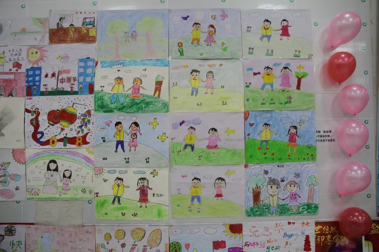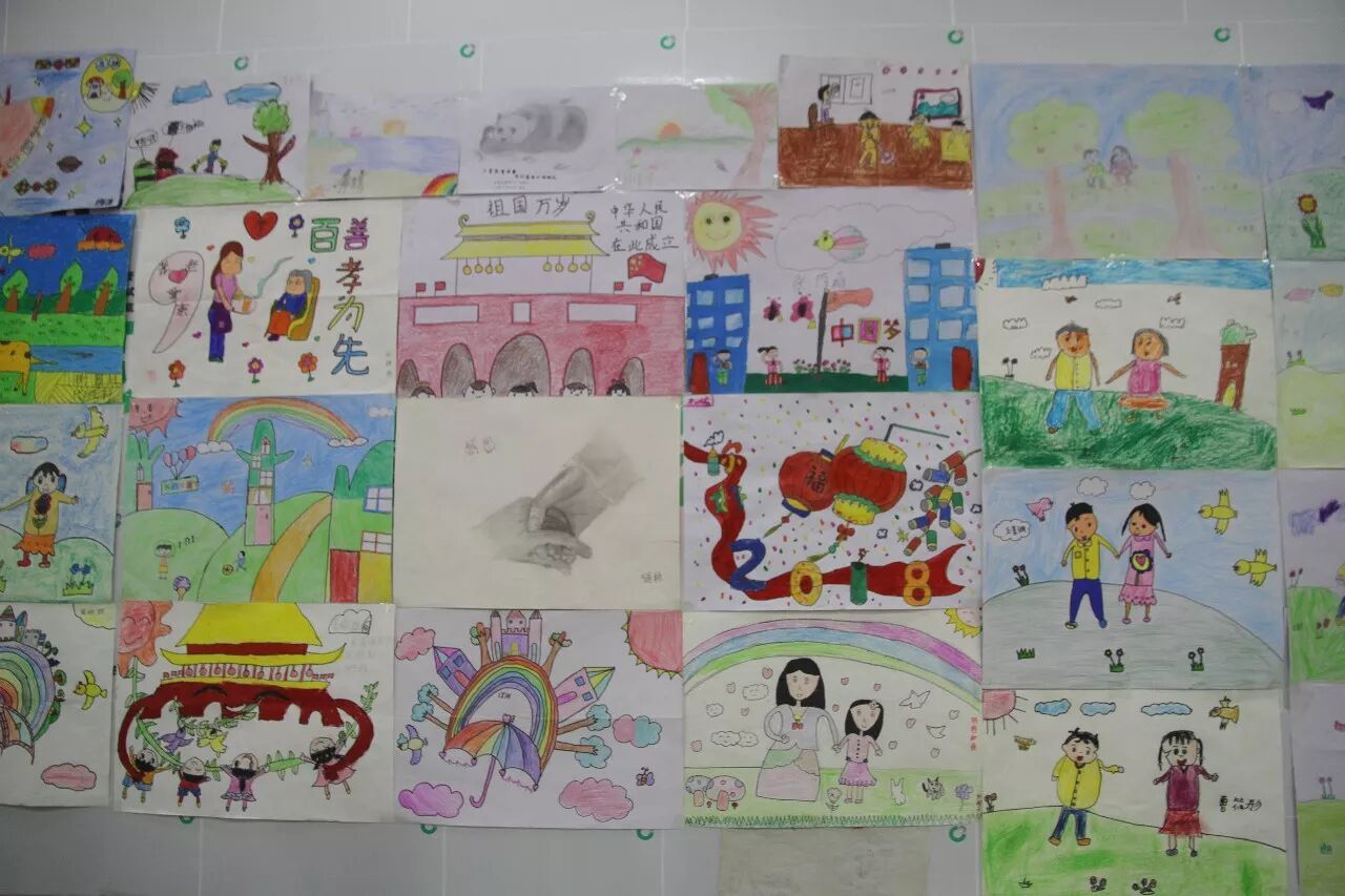 大厅后面墙上贴满了孩子们的绘画作品,淋漓尽致渲染出孩子们的童真和梦想