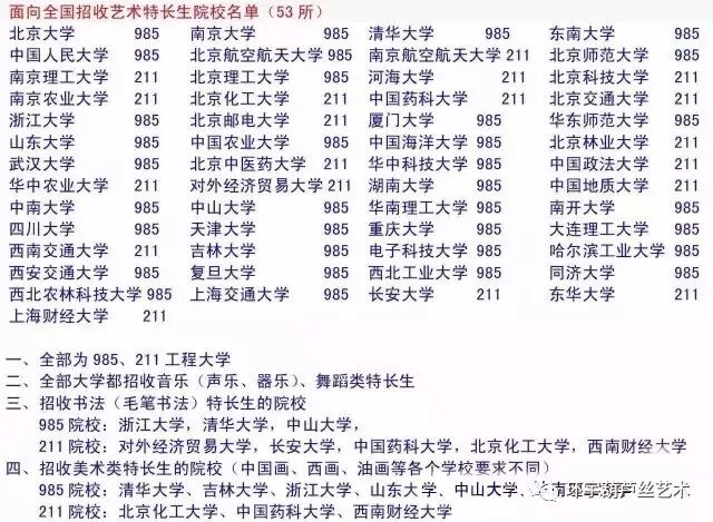 按照新通知,53所高校的艺术特长生仍然可以招生,但“艺术特长生”的叫法不再,变成了53所高校的高水平艺术团招收特长生。