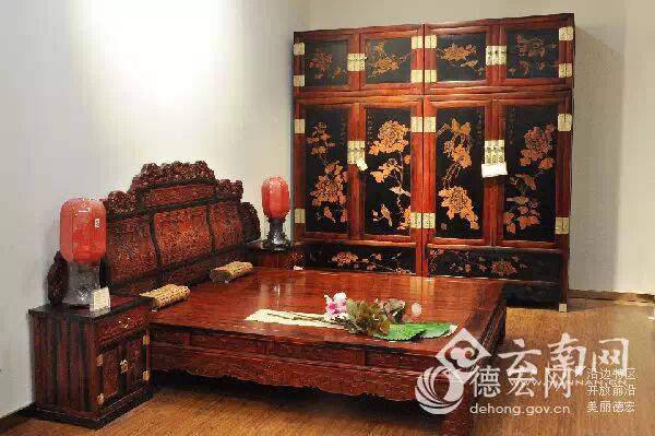 德宏因其特有的地理区位优势,一度成为东南亚、南亚红木资源集散地和名贵木材“中转站”。近10年间,中国经济快速发展,红木家具业也迎来了自己蓬勃发展的黄金时期,德宏红木家具产业也是在这一时期发展和成熟,完成了由“中转站”向西部“红木之都”的华丽转身,形成了以仿古家具、木雕、根雕为代表,集原料采购、产品的设计、加工生产、销售服务于一体的完整的红木文化产业体系。德冠恒隆红木、彩云南木业等一批具有竞争力、影响力和自主创新力的大型红木文化企业脱颖而出,“福禄缘”、“德恒红”、“千紫”、“赵德顺”、“立立红”、“老木香”等一批地方特色鲜明、知名度高、深受消费者欢迎的知名红木文化品牌应运而生。