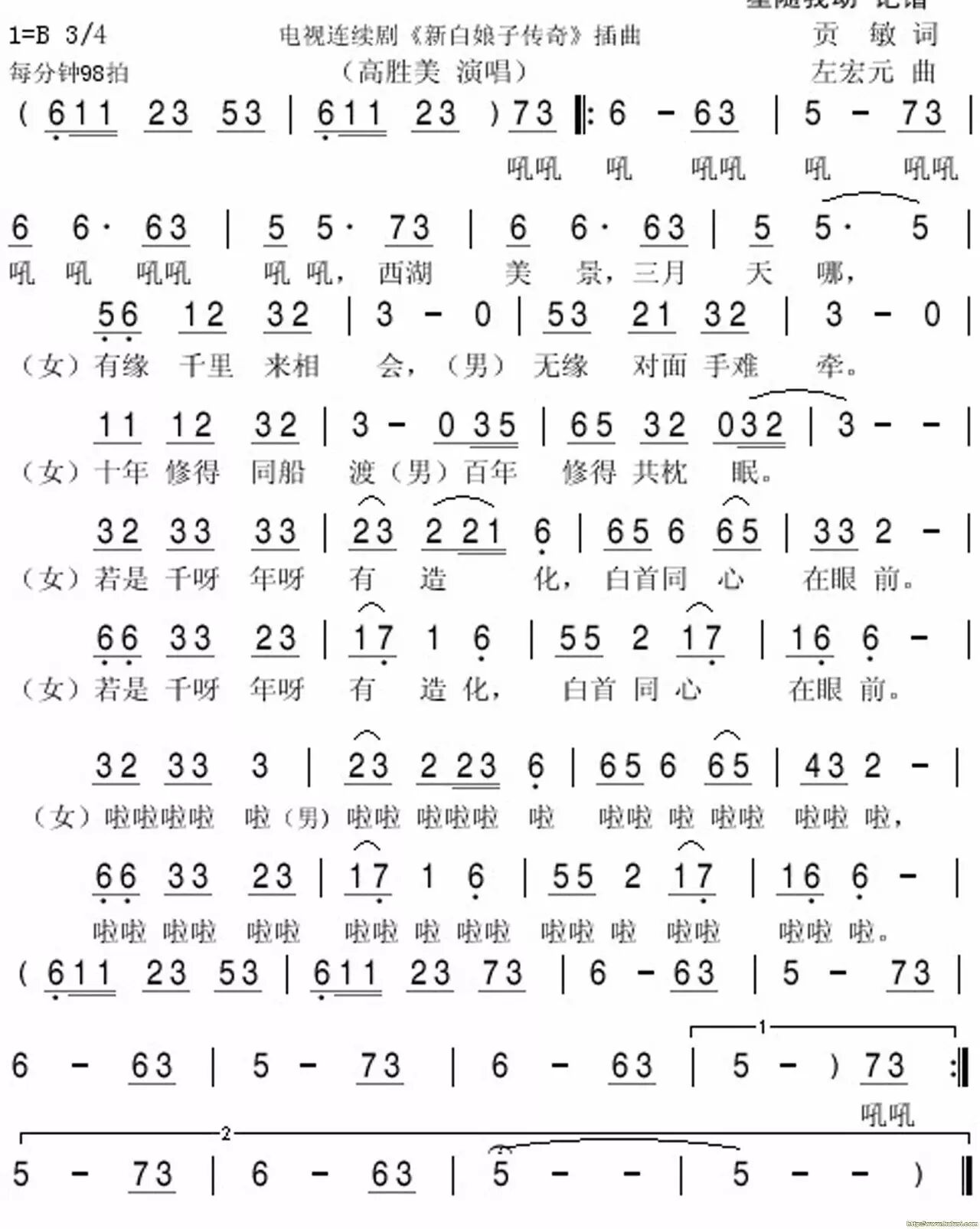 附曲谱: