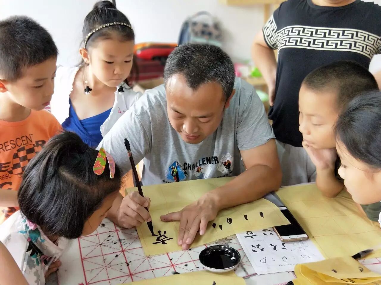 一点,一横,一撇,一捺,组合成了汉子的基本结构,想要写好字,除了需要大量的练习之外,还需要掌握基本的要领。小朋友们在老师的指导下兴致勃勃的提笔写字了。