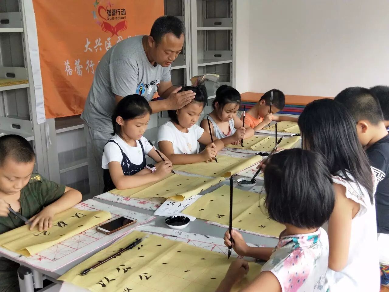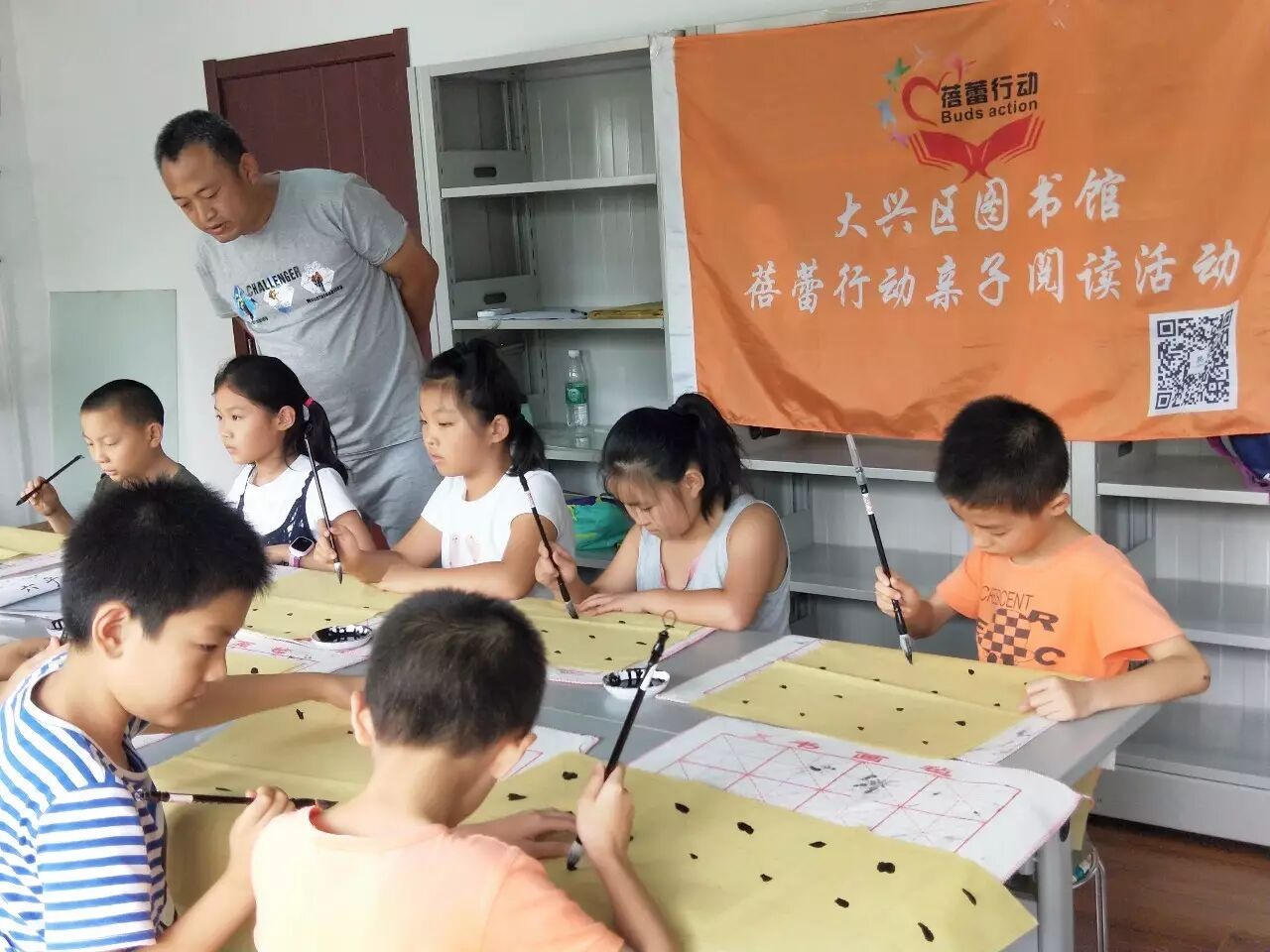 7月24日上午9:30,大兴图书馆联合早教协会推出的“蓓蕾行动”暑期传统文化精品课程在大兴图书馆图书配送中心开课了,此次课程包括传统乐器葫芦丝和国学书法!