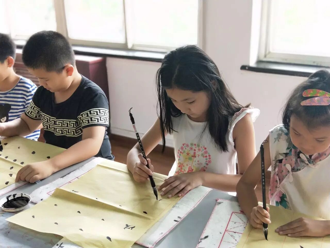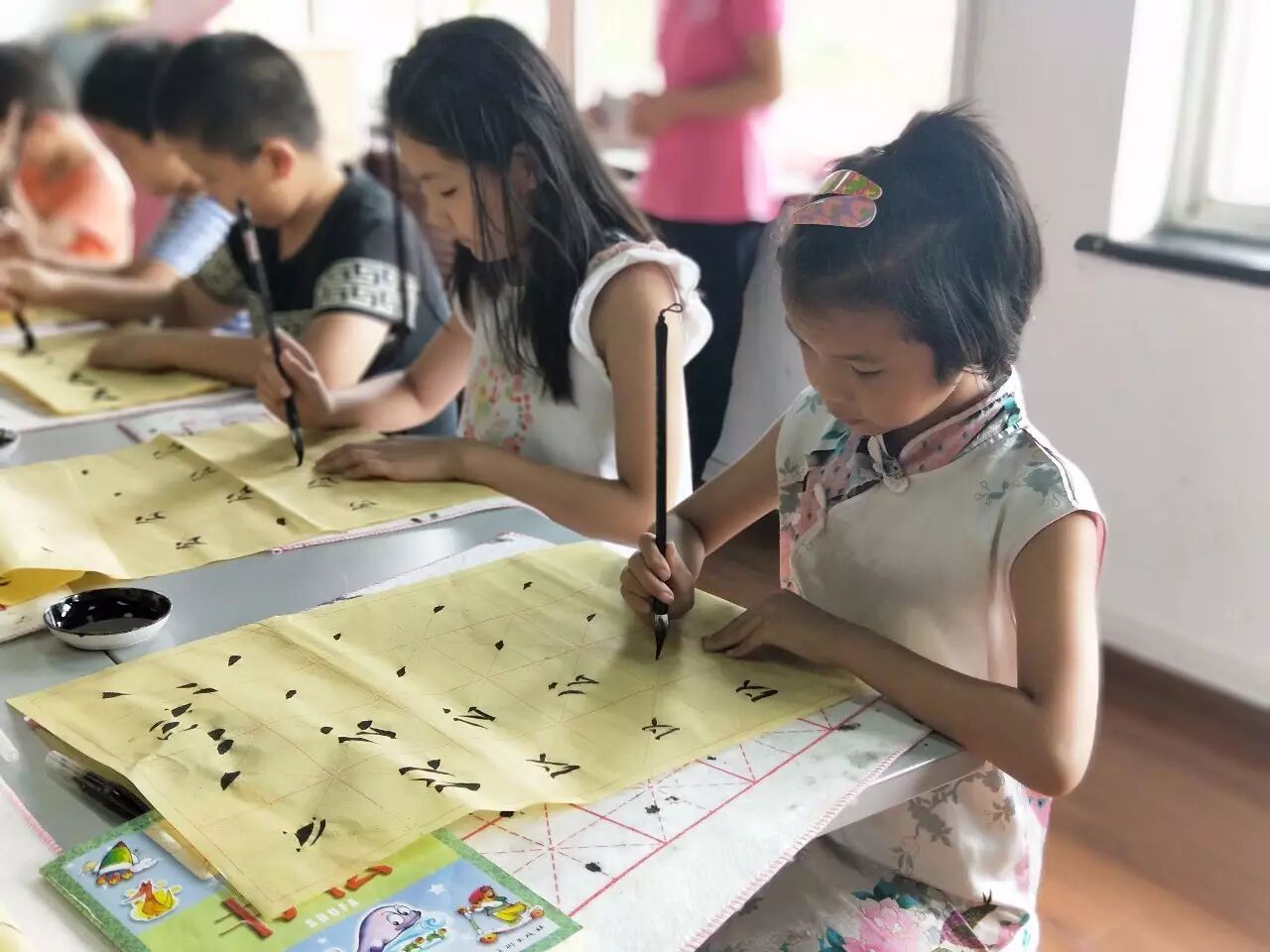书法, 是我们的传统国学的一种,练习书法之前要准备好工具:笔、墨、纸、砚。这次“蓓蕾行动”的书法课程也受到了很多小朋友的欢迎。