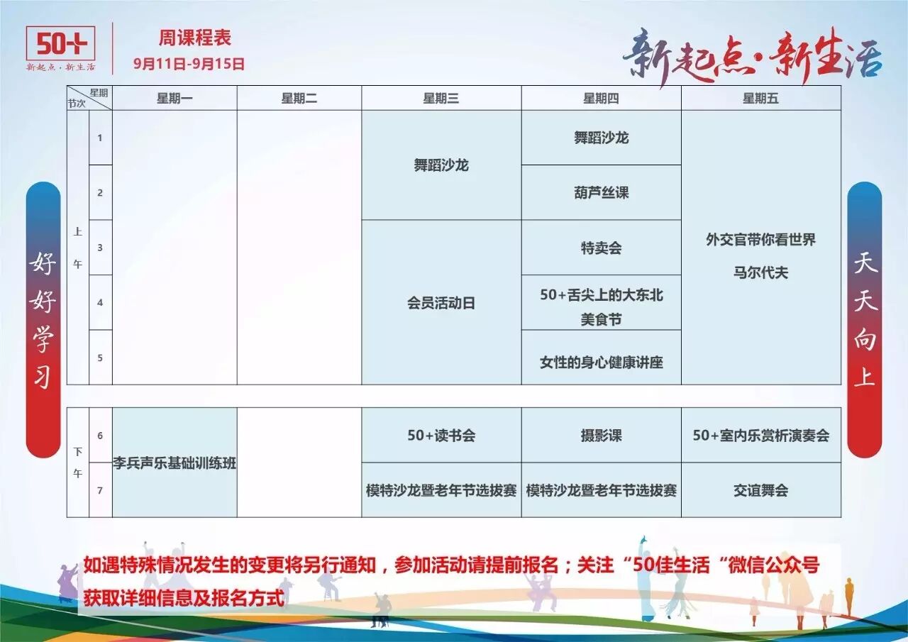 感谢广大朋友对50+生活馆活动的关注,特献上《下周50+生活馆会员活动一览》٩(๑❛ᴗ❛๑)۶