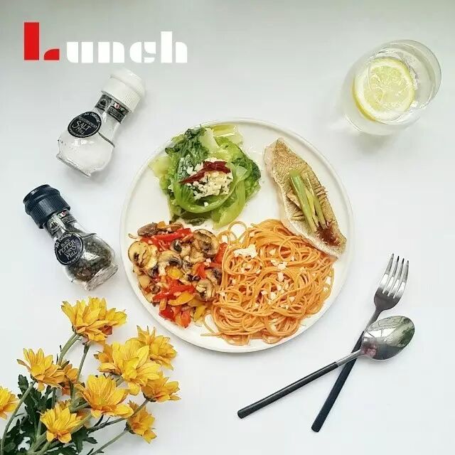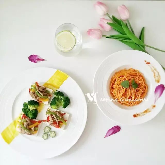 清蒸鱼柳+蒜香意面+白灼生菜+彩椒