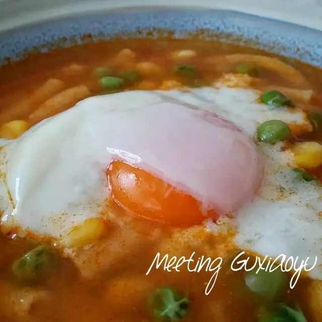 橄榄油烧热后放入洋葱爆香,下其他材料,以及玉米青豆等,翻炒几下后加水。