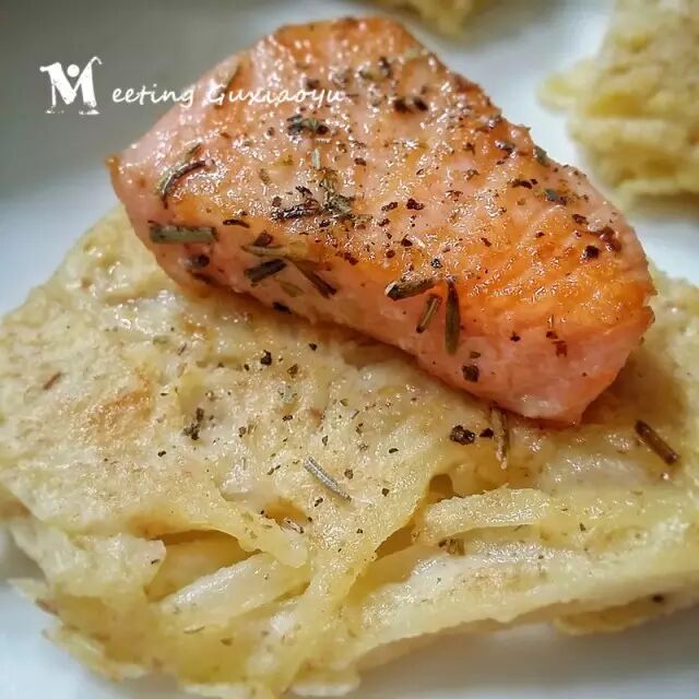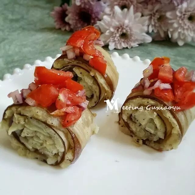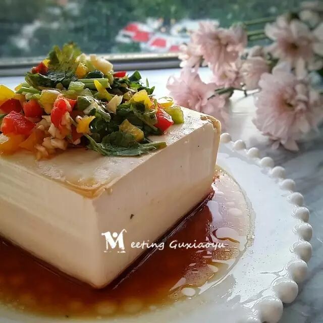 3. 上面放蒜蓉,一点橄榄油烧热浇在蒜蓉上,放一点盐和醋调味即可。
