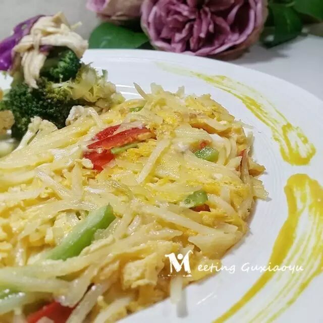 鸡蛋打散,加一点牛奶和盐,平底锅少放一点油,油热后倒入鸡蛋,随即关火,用锅铲从外向内翻炒鸡蛋,差不多凝固就可关火,鸡蛋就会很嫩滑。
