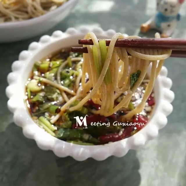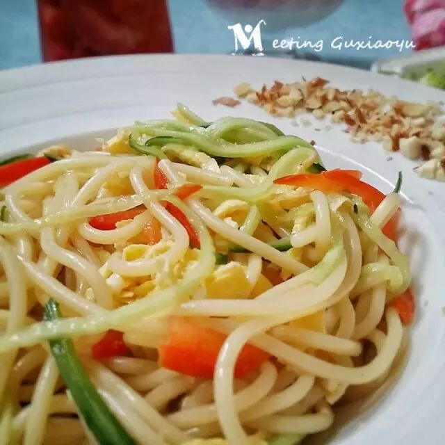 蒜蓉爆香,放入意面翻炒几下,加盐出锅即可。