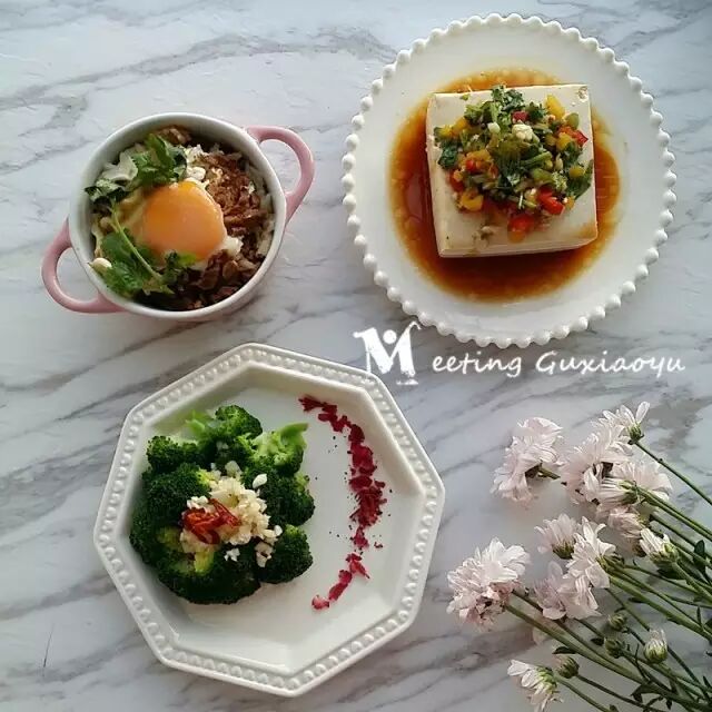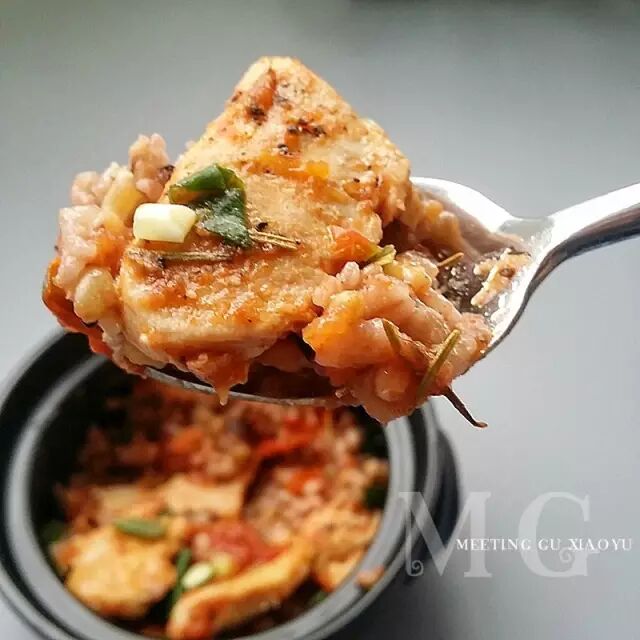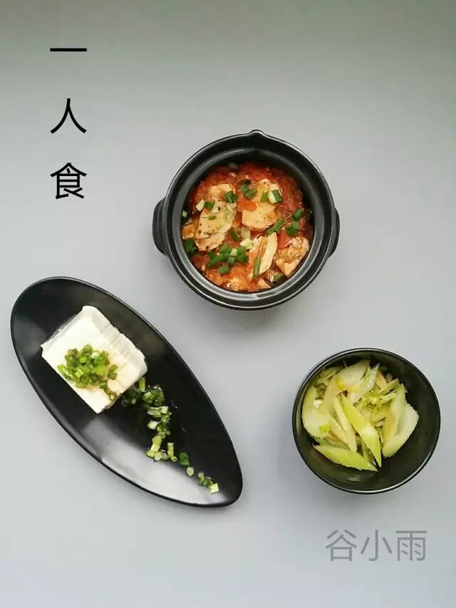 迷迭香番茄鸡胸烩饭+小葱豆腐+炝炒西芹