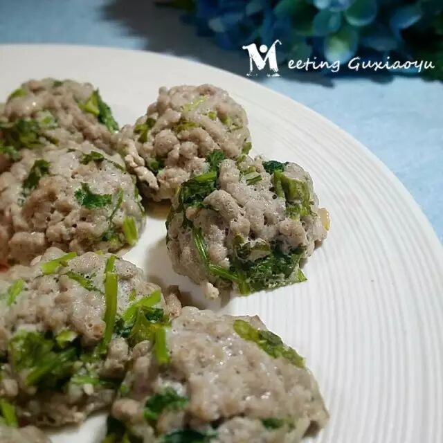用手大概团成原形,因为毕竟没有淀粉,不好揉成圆溜溜的丸子,就大概归拢一下就行,放入盘中。