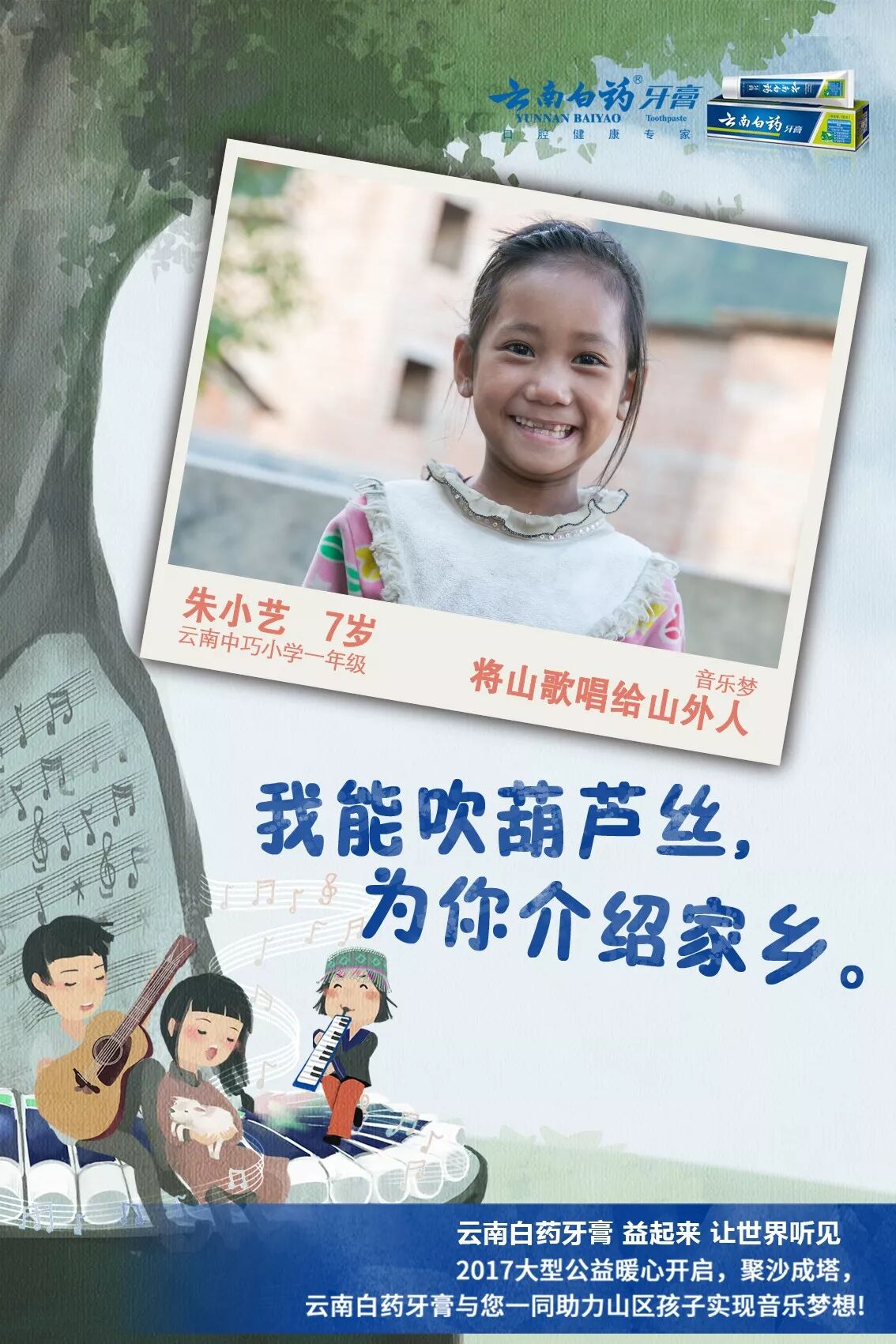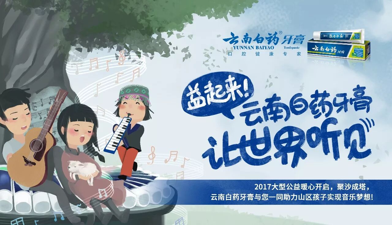 云南白药牙膏2017“益起来!让世界听见”大型音乐公益活动暖心开启,关注山区儿童成长,助力他们的音乐教育。