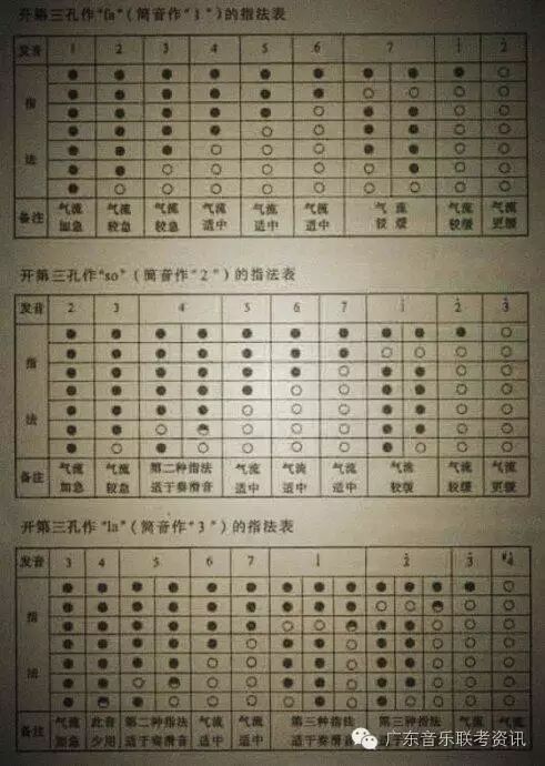 1.右手无名指、中指、食指用第一节指肚分别开闭第一、二、三个音孔,拇指拖于主管下方。左手无名指、中指、食指用第一节指肚分别开闭,第四、第五、第六音孔,拇指开开位于主管前下方的第七音孔。