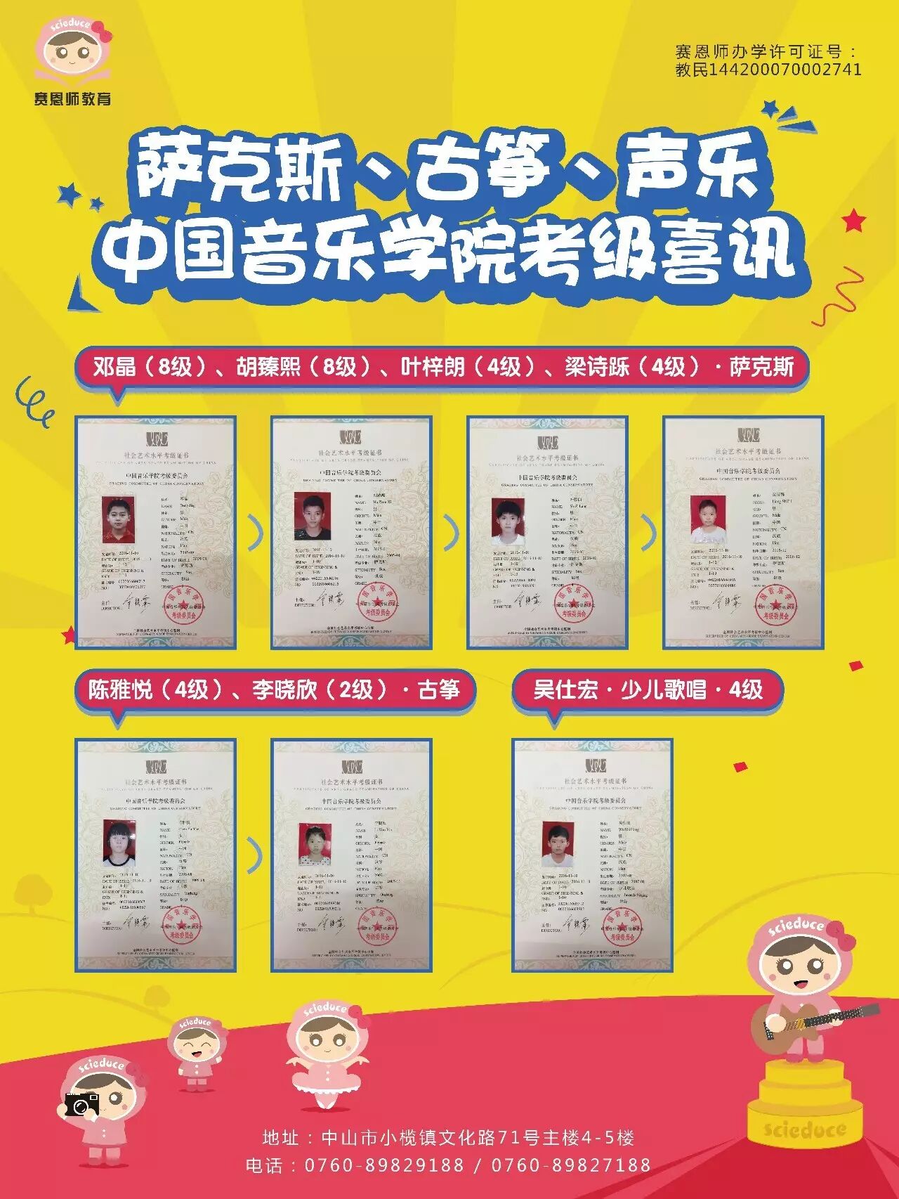 摘要:胡臻熙 萨克斯 8级、邓晶 萨克斯 8级、梁诗跞 萨克斯 4级、叶梓朗 萨克斯 4级、陈雅悦 古筝 4级、李晓欣 古筝 2级、吴仕宏 少儿歌唱 4级