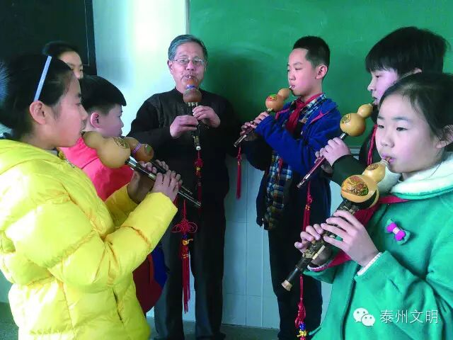 按说,退休了就该好好息息,但泰山社区退休老校长许荣庆不这么想,两年前,他主动找到泰州市实验小学,开办了一个葫芦丝班。许荣庆从小喜欢吹拉弹唱,口琴、二胡、笛子,无师自通。最初的梦想就想考个音乐学院,可机不逢时。下乡插队回城之后,恰巧教育局公开招录中小学老师,他通过考试,成为一名音乐老师,也算是走上了自己想走的那条路。工作后不久,南京艺术学院开门办学,在泰兴设了个培训点,许荣庆成了第一届学生,系统学习了乐理知识和手风琴等多种专业乐器的弹奏,顺利拿到了结业证书。许荣庆先后在海陵区多家中小学任教过,最后在泰州市沈毅中学退休。因为多才多艺,教育成果显著,他从一名普通老师一直做到副校长。“上世纪80年代那会,我担任学校团委书记,负责文艺宣传。不安分的我组建了一支号鼓队,每天下午放学,便把这群孩子组织起来,给他们排练节目。那时候的孩子,吃得都不好,特别是男孩子,一个个皮啊,还没到放学直嚷嚷饿死了,吹号打鼓是个力气活,得!先得把这些小家伙喂饱才行。每次排练,我得自贴营养费,给每个孩子买块大饼。”许荣庆说,自打孩子们听说上许老师的课有副餐加之后,个个挤破头想来参加,能入选的学得自然卖力。那时,许荣庆带的号鼓队可出名了,被邀请参加各类演出,兄弟学校有重要活动都得来借,他是出了名的明星音乐老师。退休后,许荣庆到老年大学专业学起了葫芦丝。他只用了3年时间,就拿到了中国音乐学院颁发的10级证书。渐渐地,许荣庆名声在外。好多培训单位高薪聘请他去教葫芦丝,都被拒绝了。“不想把自己的这点爱好和金钱扯上关系,一旦拿了人家的钱,这葫芦丝吹得就不自在了。”许荣庆说,不过,这倒给了他启发,“我可以到学校里免费教孩子学啊,也算是发挥余热。”其实,在许荣庆心里,他一直很怀念陪伴他几十年的三尺讲台,想念他的“小小号鼓队”。2014年10月,他来到泰州市实验小学,找到校领导,说明了自己的想法,“我到贵校来开班有两个原因:第一是我怀念课堂,离不开孩子们;第二,我孙女是贵校毕业的,品学兼优,离不开老师的栽培,我也想为学校做点事。”当年10月9日,泰州市实验小学葫芦丝社团正式成立,每周五下午上课。首批20多个孩子成为许荣庆的第一批学生。有些孩子不知道到哪买葫芦丝,许荣庆自掏腰包给他们买。孩子们乐理知识薄弱,他一遍一遍教他们识谱,再一句一句教孩子们吹奏。在孩子们心里,许老师考虑得特别周到:每次上课,他都要带五六个葫芦丝,以防有孩子忘记带了,可以备用;打开他的教学包,里面除了有备课笔记,还有U盘和消毒棉签,U盘是双份的,以防其中一个中毒打不开,而棉签是用来消毒的。刚开始,孩子们对这个头发花白的老师颇有“异议”,不少孩子私底下议论,“这老校长年纪这么大了,还能教啊?”上课不久后,他请来了老年大学的一帮同学,为孩子们上演了一场震撼的葫芦丝专场演奏,悠扬婉转的旋律让这些小鬼灵精大开眼界,让他们深深迷上了这种音乐表达形式。后来,许荣庆还分别邀请班上的学生跟着他一起外出做公益,到福利院,到特殊教育学校……没有过多的豪言壮语,许荣庆用自己的行动让孩子们对他肃然起敬。去年年初,许荣庆带着葫芦丝社团学生陈子淇、周帅驰,代表泰州市实验小学和泰山社区登上了江苏电视台综艺节目《震撼一条龙——加油社区》的大舞台,3人合奏一曲《月光下的凤尾竹》,悠扬的曲调、娓娓动听的旋律缓缓奏来,获得评委和观众的一致好评。去年5月底,泰州市实验小学艺术节闭幕式上,葫芦丝团所有学员奉上的团体吹奏,出尽风头。该校分管教学的副校长钱桂红说,“许校长很让人敬佩,孩子们交给他是交对了;学校其他社团的老师要么是学校老师自己担任,要么是邀请来的,像许校长这样自己主动要求过来任教的就他一个。如果有更多像许校长这样懂得感恩的家长加入到学校学生教育中来,那就太好了。”