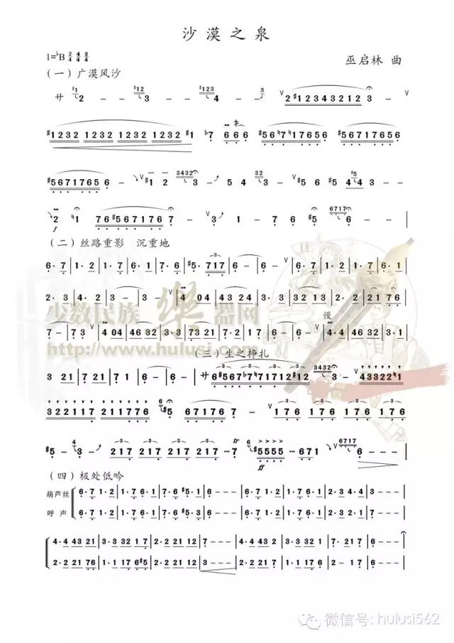 《沙漠之泉》,创作于汶川地震以后,作者巫启林,前后写了一年多的时间,在今年的7月份定稿,那是一段心灵的感伤和重生的盼望,“太难写了!”这是作者在创作的时候常常说的!的确如此!用葫芦丝这么轻柔的音色表现那么深沉的思想,很难!此曲也很难吹!……说什么呢,爱是永不止息!