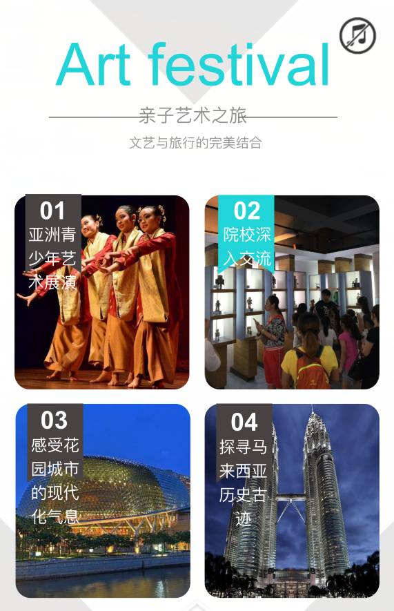 ·深度艺术旅行,学习异国文化,从点点滴滴了解新加坡马来西亚人民的生活,结交朋友,开阔视野,培养团队协作能力,培养独立能力。