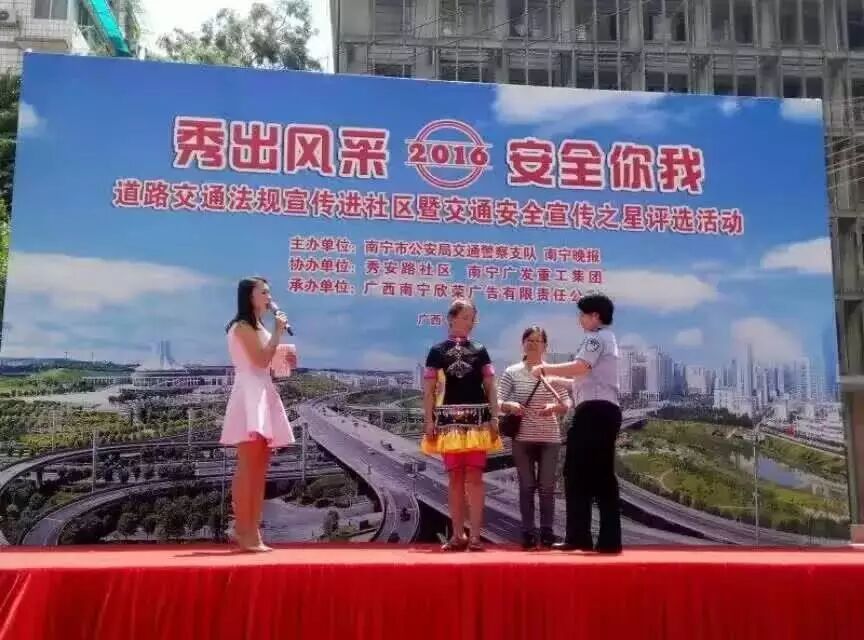 7月23日,由南宁晚报与南宁市公安局交警支队共同举办的第13场“秀出风采,安全你我”道路交通法规宣传进社区暨交通安全宣传之星评选活动走进南宁秀安路社区,用精彩的节目将交通知识进行诠释,为居民上了一堂别样的交通课。