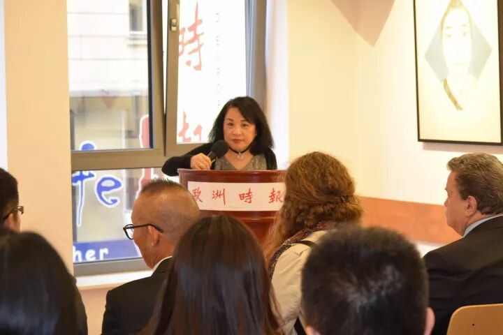 随后,奥地利美术家代表赵雨生致辞,她感谢欧洲时报维也纳中国文化中心为世界艺术家提供这样的文化交流的平台。中国文化艺术百花齐放,中国的中青年艺术家有了自己的发展轨道和独立的艺术风格,特别是今天看到了几位艺术家的作品,洋溢着清心的气息,非常的精彩。这些作品不仅吸收了西方的现代艺术的观点和技法,还融合了中国的传统文化,立意别致、题材新颖。采用象征的手法独辟心意,典雅绚丽。感谢几位画家给观众带来的清新之感。