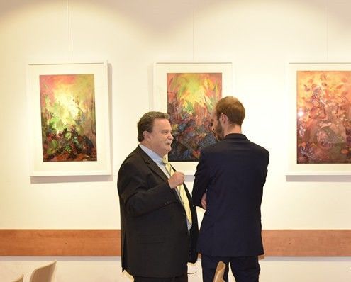 接着,奥地利哲学家和美术评论家Dr. Phil Kurt E. Simperl致辞,他表示很高兴并且很荣幸能够参加艺术展开幕式。这里所展出的当代艺术既和传统艺术存在着联系又有着创新,艺术家们尝试着不同于传统形式的艺术表现方式。他祝贺在座的艺术家们所取得的成就,并希望画展能够圆满成功。