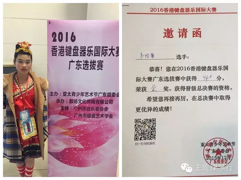 2015年12月6日,“2016香港键盘器乐大赛·广东选拔赛”在广州白云国际会议中心举行!主旋律葫芦丝学员韦怡馨在选拔赛中以出色表现获得少年A组金奖,进入总决赛!
