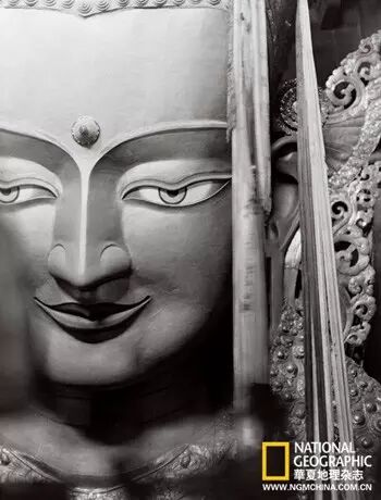 ▲德木活佛在1935年拍摄的15世纪的强巴佛像,。