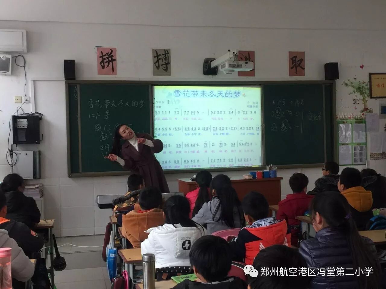 郭老师今天准备的是人音版第九册最后一课《雪花带来冬天的梦》。随着郭老师热情洋溢的声音,学生们就开始了今天的音乐之旅。首先,郭老师用Rap的这种新颖的形式来念歌词,一下子就抓住了学生们的心,课堂气氛马上就被调动了起来。接下来,郭老师从音乐知识、节奏入手,到后来的编创歌词、合唱指挥,一层层的深入教学,让学生们在不知不觉中就掌握了本节课的学习目标和重难点……在一声声欢快的歌声中结束了本节课。