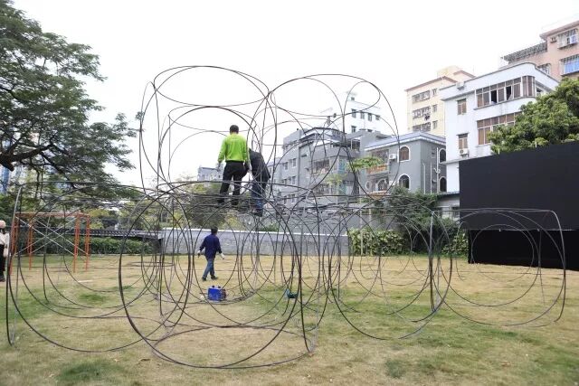 开幕式当日,已经94岁的建筑先锋Yona Fridedman出现在南门公园的草坪上,开始搭建属于深圳的“街道美术馆”。