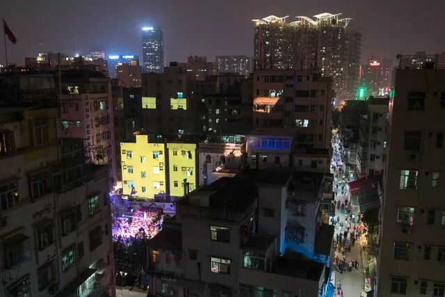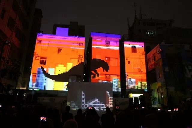 开幕式当晚,居民楼变身大型“游戏机”,复古的像素游戏一秒回到80年代。热闹的“众生喧哗合唱团”,邀你一起扭动起来。