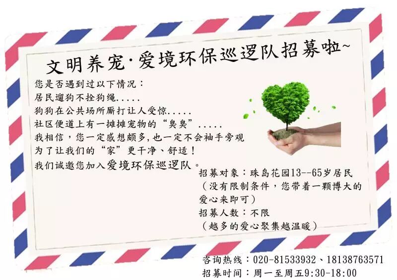 岛主了解到,目前,桥中街家庭综合服务中心环保巡逻队招人啦~只要您有一颗博大的爱心即可报名。