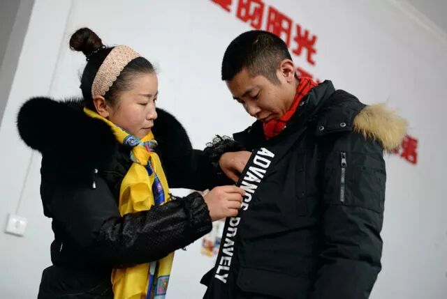 (毕淑琼为儿子整理衣服)