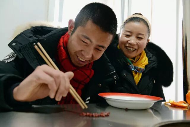 (宏坤练习用筷子夹红豆)