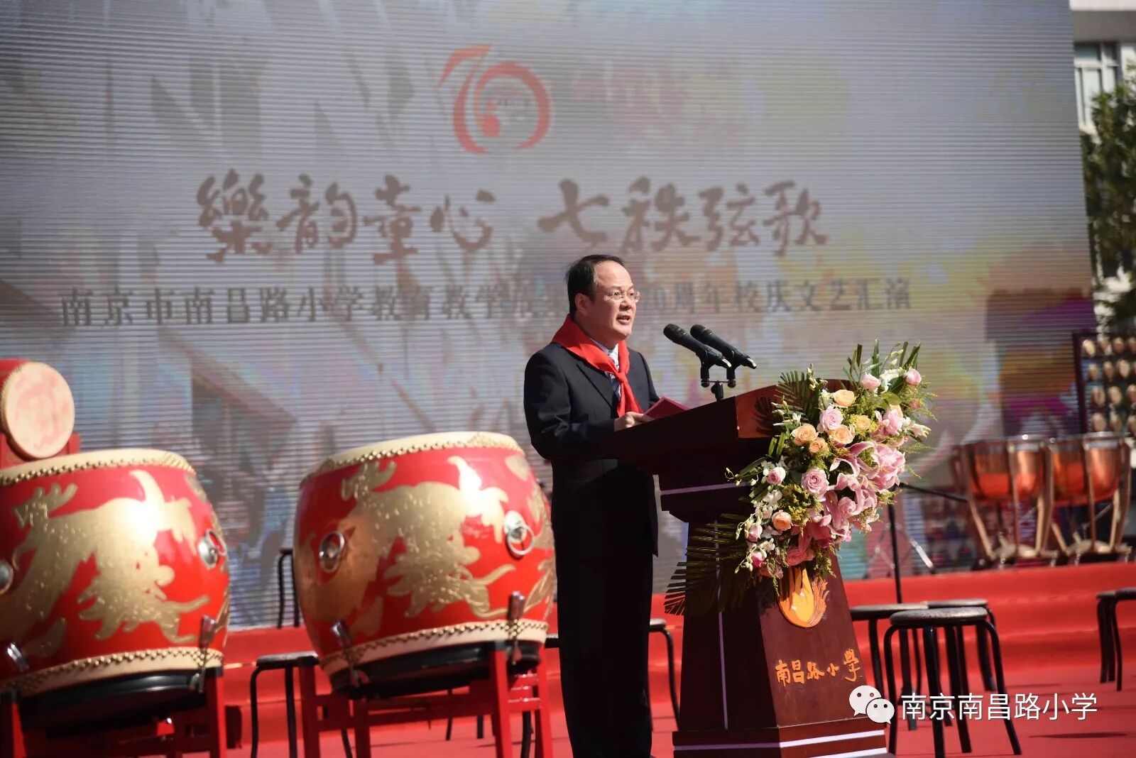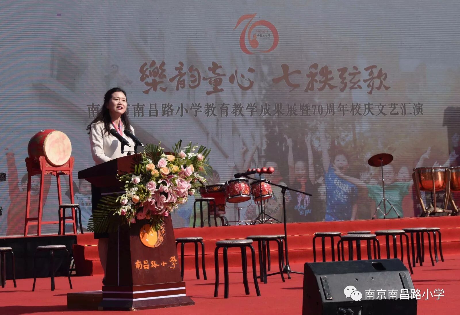 华校长代表学校对莅临嘉宾表示了热烈的欢迎和诚挚的感谢。她在致辞中说,南小的发展离不开历代领导的艰苦创业、呕心沥血,离不开一代代南小人的融情汇智,风雨同舟。借助小班化和民乐艺术教育两翼,南小已成为一所具有影响力的江苏省实验小学。南京市教育局孙百军局长在庆典上发表贺辞,对南小已有的发展给予肯定,对今后的发展提出希望,这都是对南小人的激励。鼓楼区委董伟副书记带着对学校的关怀也在庆典上致辞。作为“中华传统文化传承学校”,华校长深谙责任之重,于庆典之日郑重宣布启动《中华优秀文化小传人成长计划》项目。