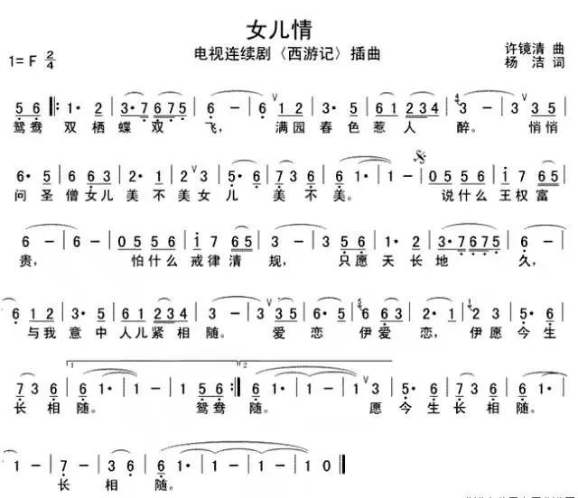 《女儿情》为1988年版电视剧《西游记》第十六集《取经女儿国》的插曲。《女儿情》同本集中另一首插曲《相见难别亦难》同曲异词,同样悦耳动听、悠扬感人,几十年以来仍被世人传颂,堪称经典。多年来这首歌被改编成各种不同乐器演奏的版本,被翻唱的版本同样是数不胜数。这首歌堪称电视剧名曲中的经典之作。