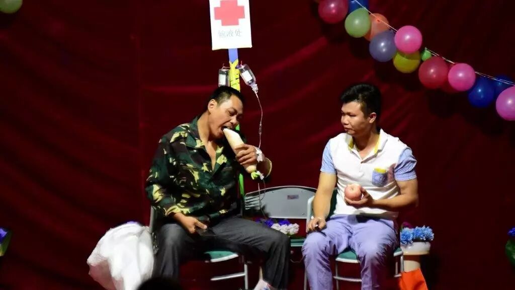 由动力电机一车间葛泽瑜和吴锦存为大家带来的哑剧小品《攀比》